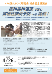 きたる4月26日(日)に第14回POIC総会記念講演会を開催いたします。今年もリアル会場・ZOOM会場と合わせてのハイブリッド開催となります。